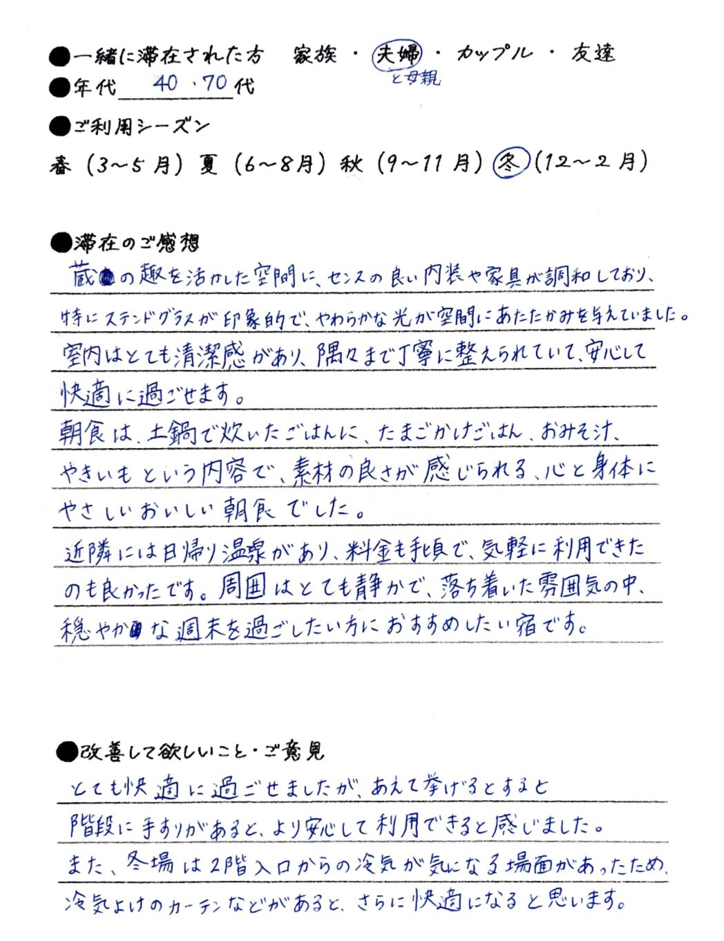 当施設は1日1組限定でゲスト様をお迎えする、プライベート重視の「蔵一棟貸し民泊」です。ゲスト様が滞在を水入らずで満喫できるよう、可能な限りプライベートな空間作りを意識しています。