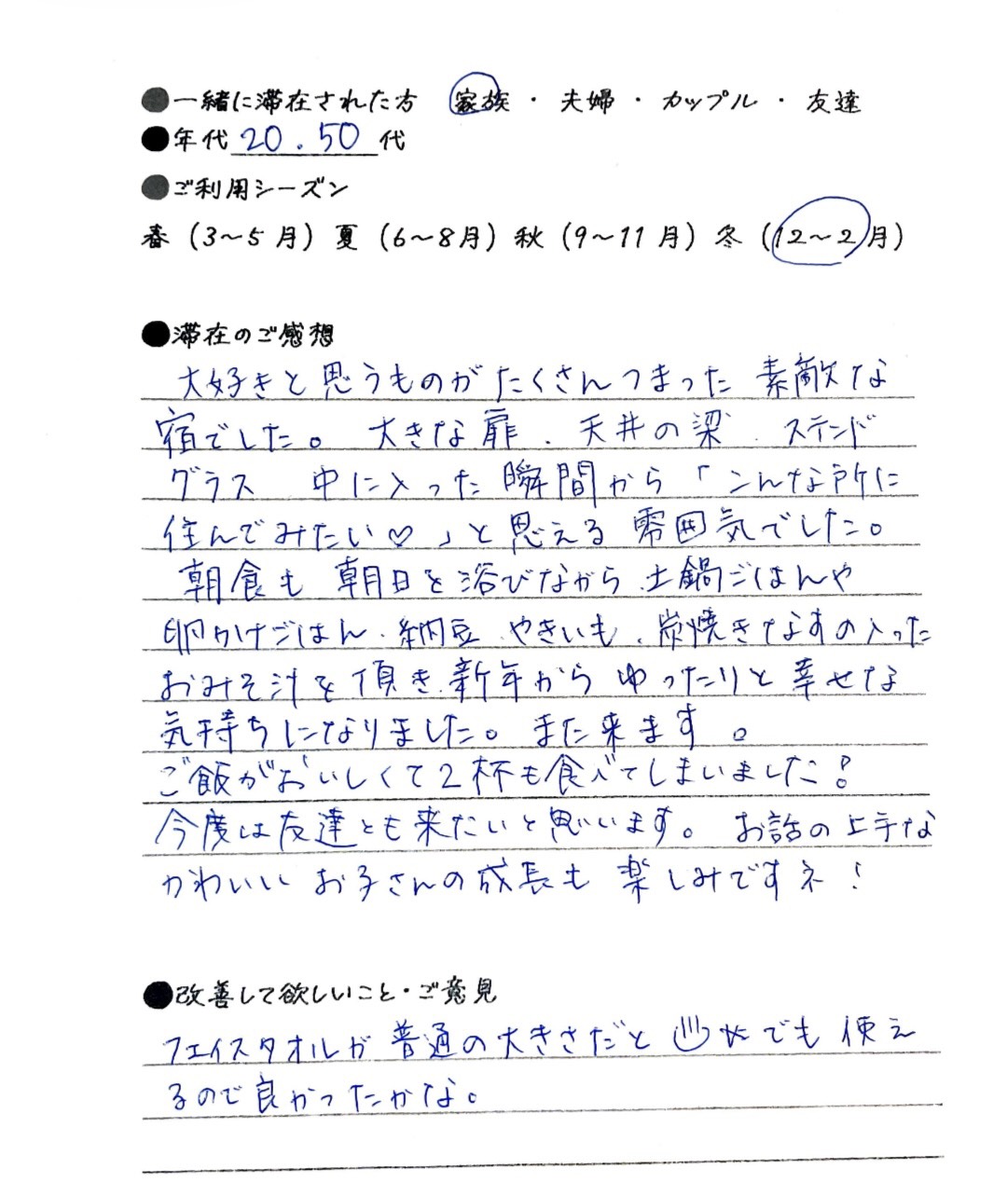 貸し別荘のようにお使いいただけますが、同敷地内では運営者と動物(ヤギ)も生活しています。すべての作業を夫婦二人でまかなう民泊のため、ホテルや旅館と比べて提供できるサービスに限りがございます。ゲストとホストがお互いに気持ちよい時間を過ごせるよう、どうかご協力のほどよろしくお願い申し上げます。